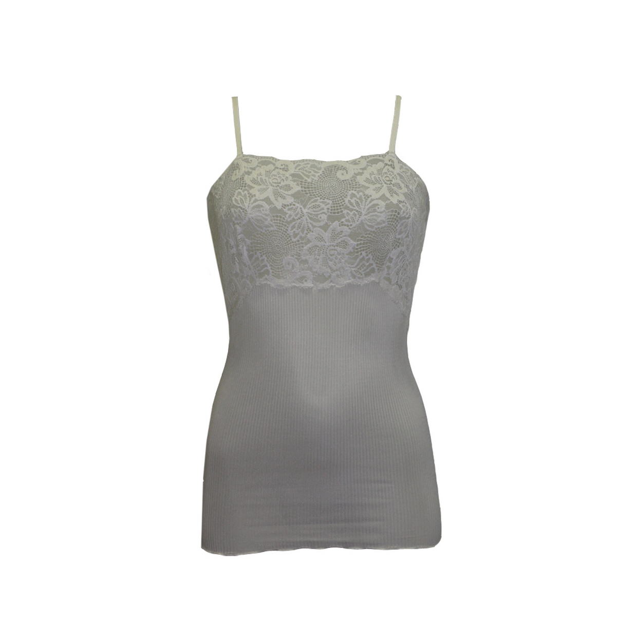 Майка на тонких бретелях, которые регулируются по длине. Изделие выполнено из бесшовного трикотажного полотна. Мягкое эластичное кружево. Низ оверлок.