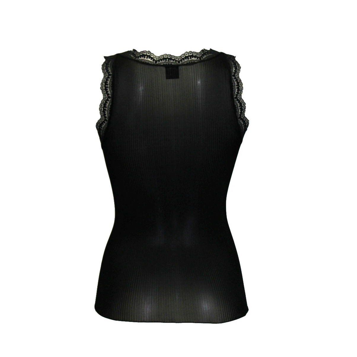 Майка на широких бретелях, выполнена из бесшовного трикотажного полотна. Пройма и декольте обрамлены кружевом. Низ оверлок.