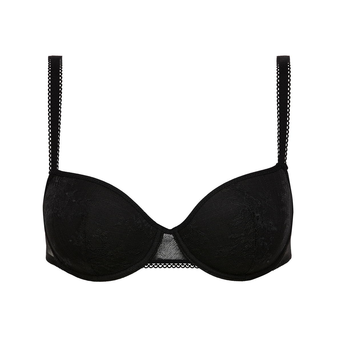 Бюстгальтер с формованной формой чашек - спейсер - ("дышащий") на косточках, выполненный из 3D-материала нового поколения, который характеризуется легкостью и воздухопроницаемостью; позволяет дышать и быстро отводить ненужную влагу; Чашки покрыты кружевом с цветочным орнаментом. Центральная и задняя панели выполнены из кружева. Регулирующиеся бретели.