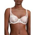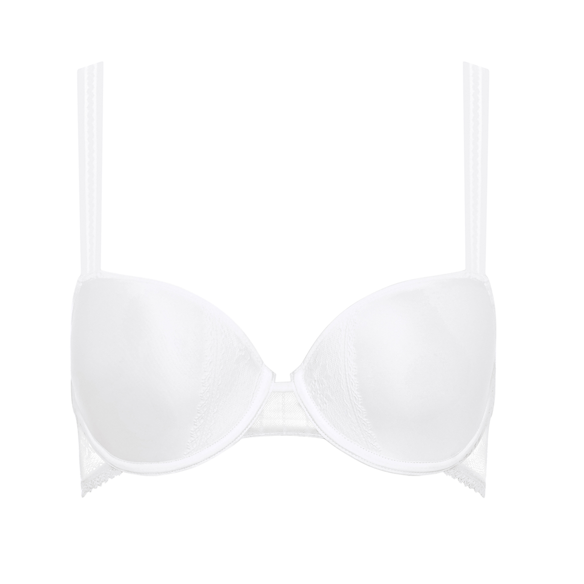 Бюстгальтер - формованный со слегка уплотненной формой чашек-"мемори": чашки выполнены из специального мусса, который приобретает индивидуальную форму груди его обладательницы. Чашки дополнены вставками из кружева. Задняя панель выполнена из кружева с цветочным орнаментом. Декоративные регулирующиеся бретели.