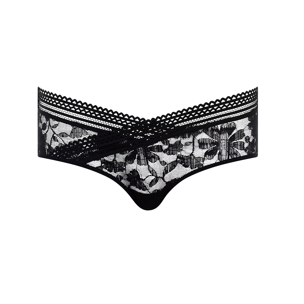 Трусы боксеры с заниженной посадкой. Полностью выполнены из кружева с цветочным орнаментом. Передняя панель дополнена кружевной тесьмой.