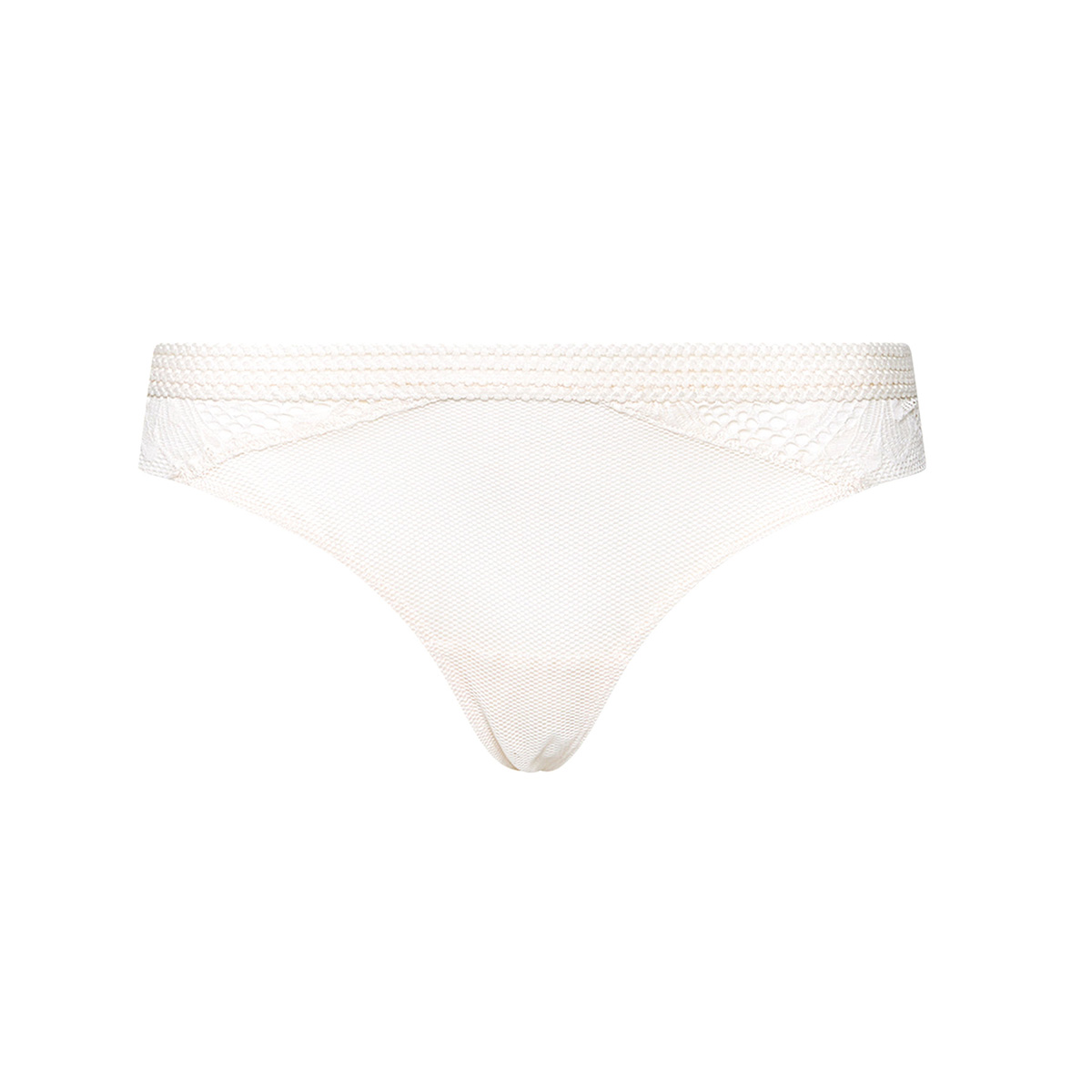 Трусы-стринги со средне-заниженной посадкой. Передняя панель выполнена из эластичной полупрозрачной сетки, боковые и задняя панели - из изысканного гипюра с цветочным орнаментом.