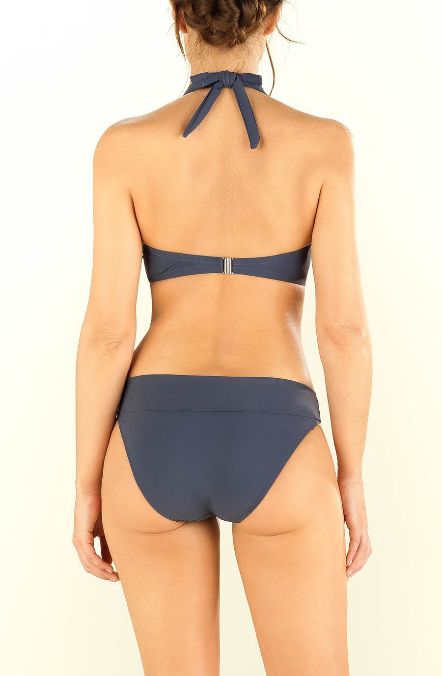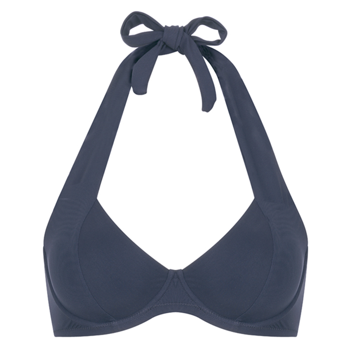 Бюстгальтер классический с мягкой формой чашек на косточках. С внутренней стороны чашки дублированы для придания необходимой поддержки. Несколько вариантов для завязывания: вокруг шеи, на плечи либо перекрестный варинт. Бретели начинаются у основания чашек.