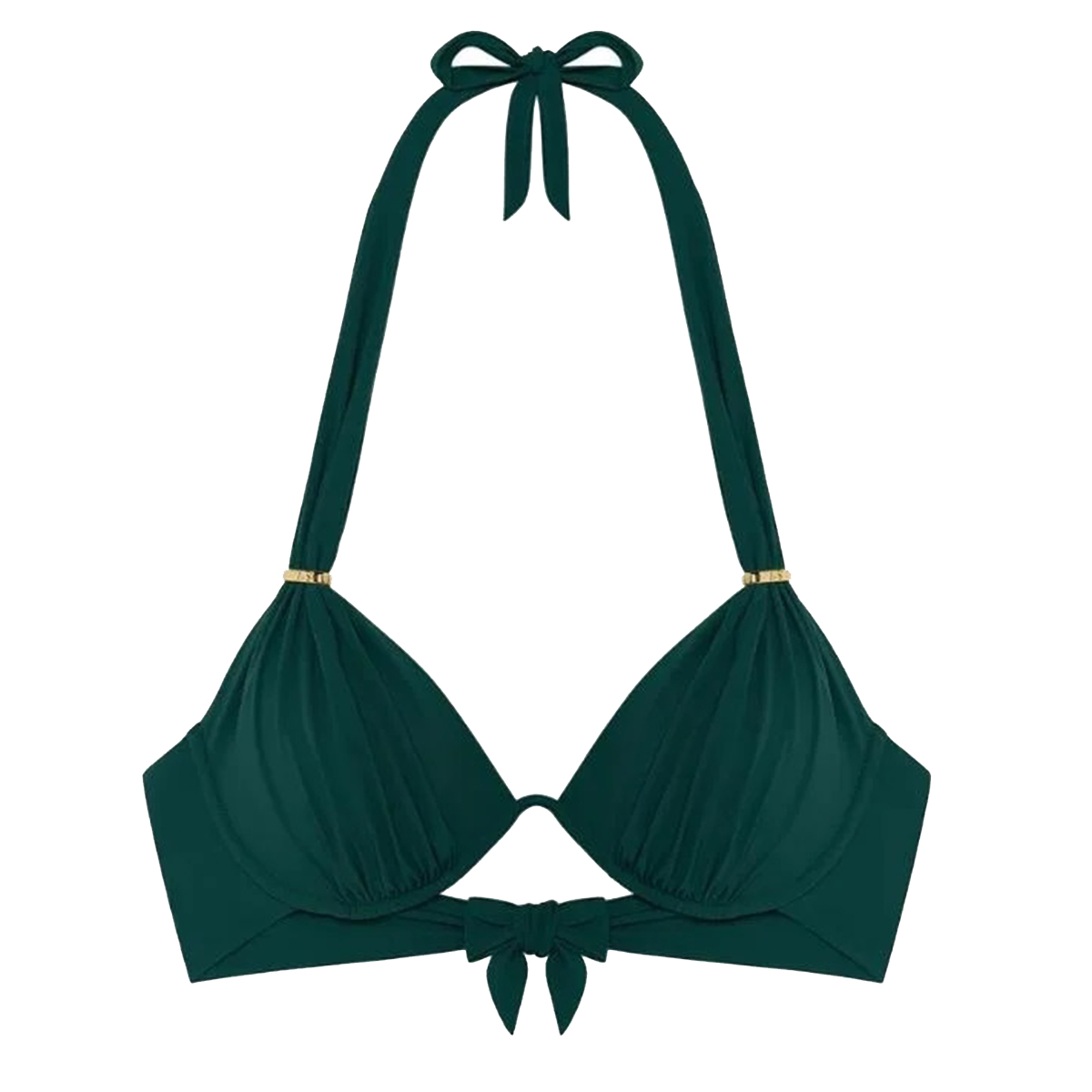 Бюстгальтер с мягкой формой чашек на монокости. Чашки дублированы с внутренней стороны для придания необходимой поддержки. Глубокое декольте. Завязывается вокруг шеи и на спине.