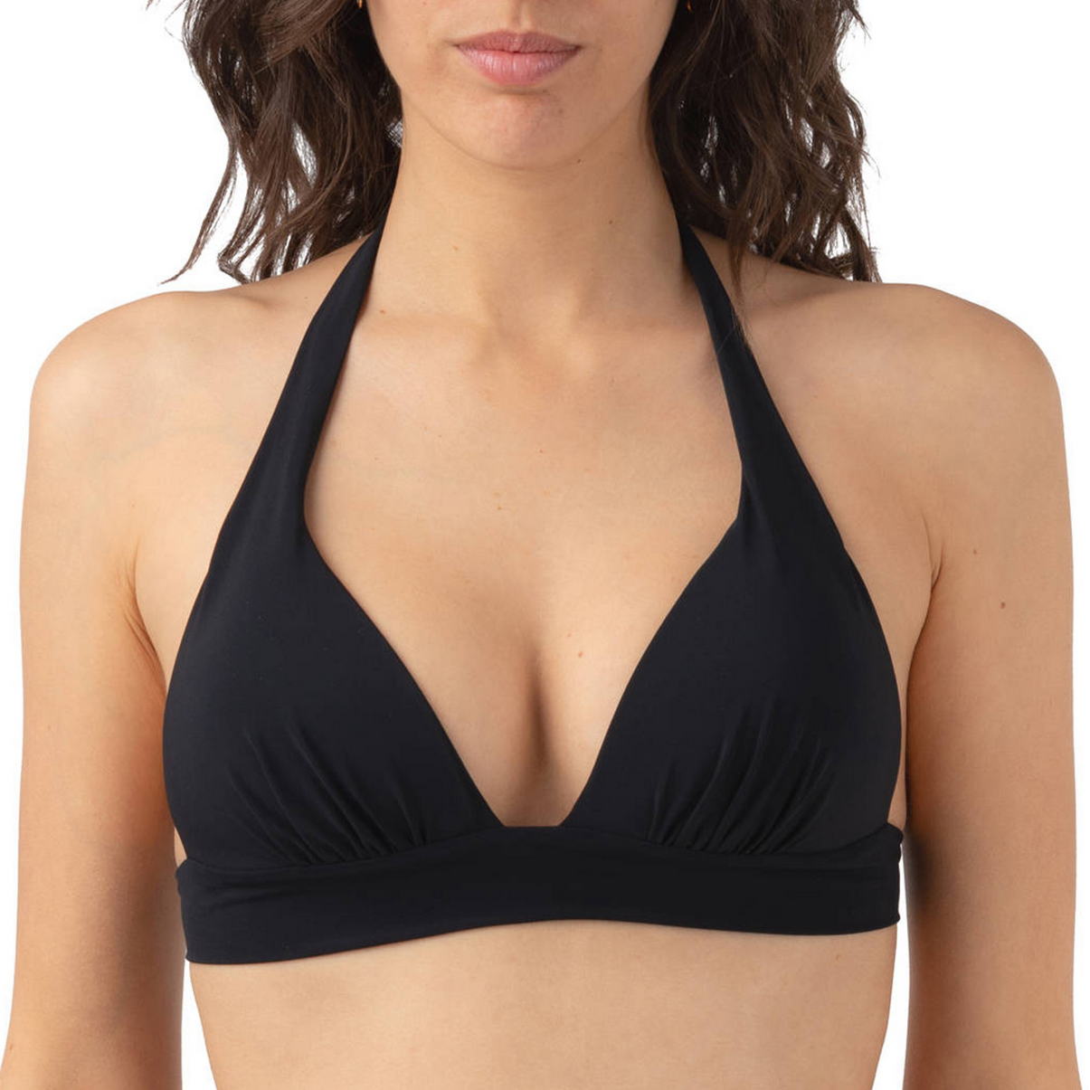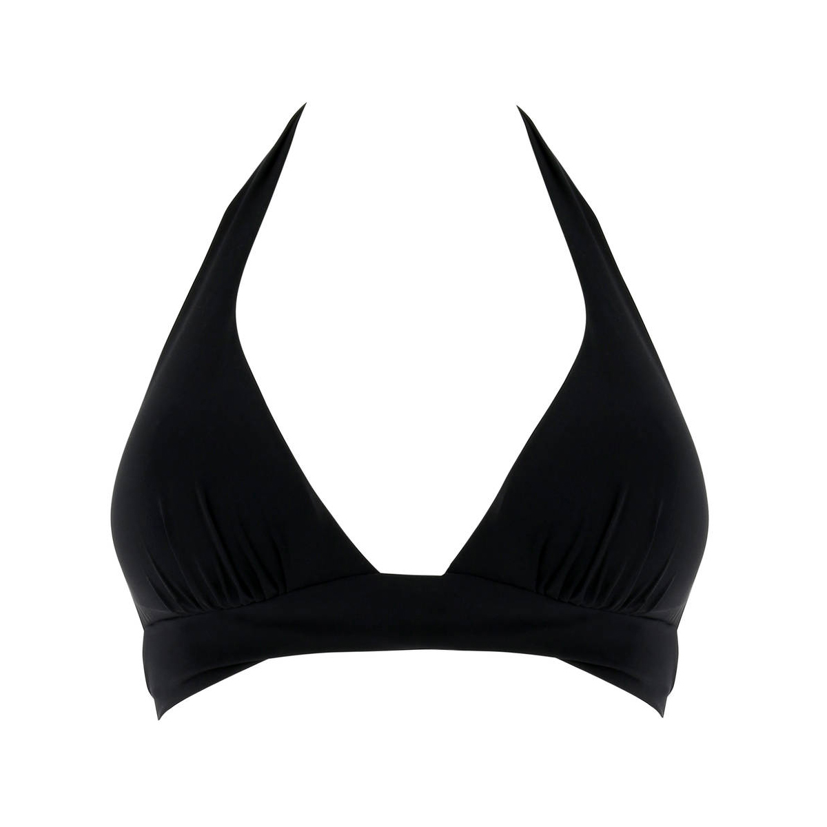 Бюстгальтер пуш ап с треугольной формой чашек без косточек, с вынимающимися подушками. У основания чашек ткань слегка присобрана. Широкие бретели завязываются вокруг шеи.