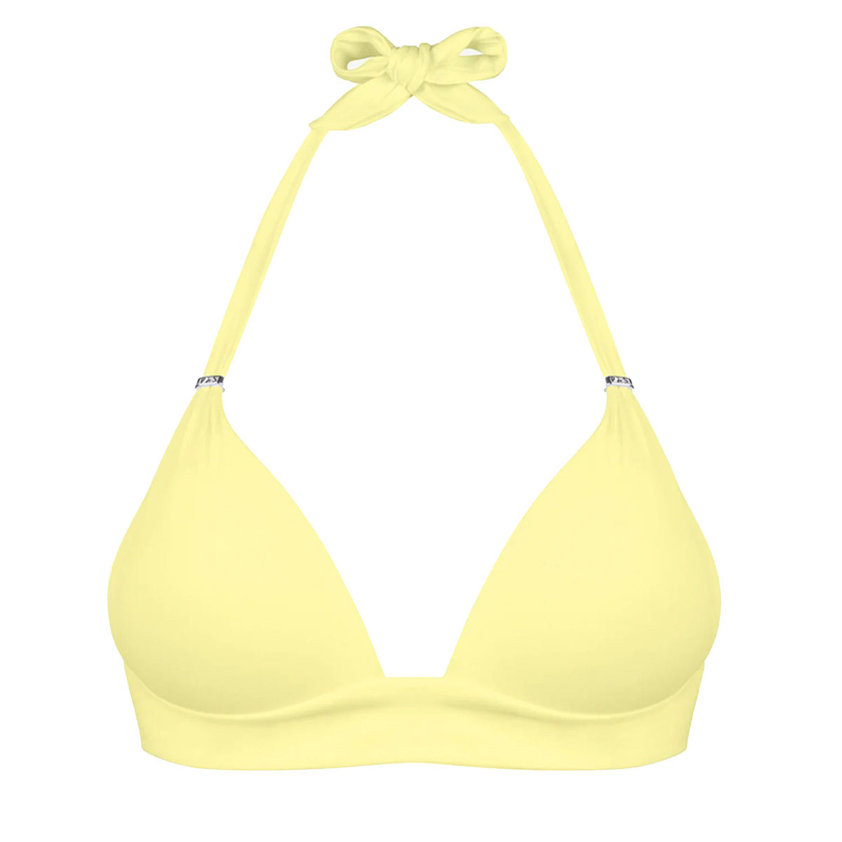 Бюстгальтер - пуш ап с треугольной уплотненной формой чашек без косточек. Бретели завязываются вокруг шеи и на спине.