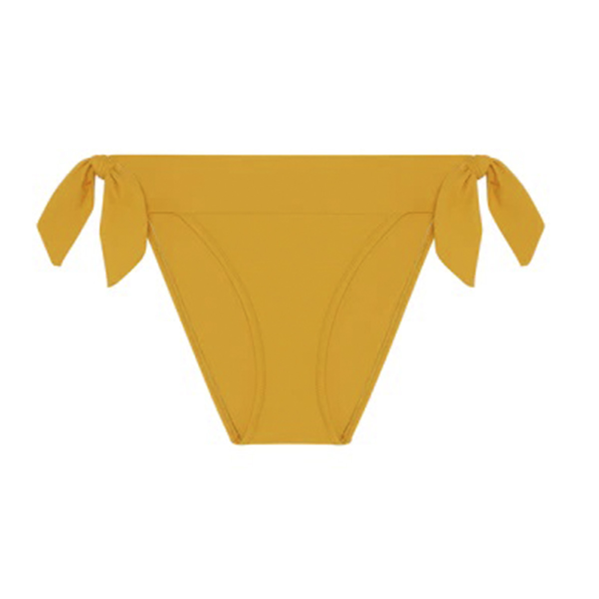 Трусы-бикини со средне-заниженной посадкой на завязках, что дает возможнсть немного корректировать размер. Передняя панель дублирована для избежания прозрачности.