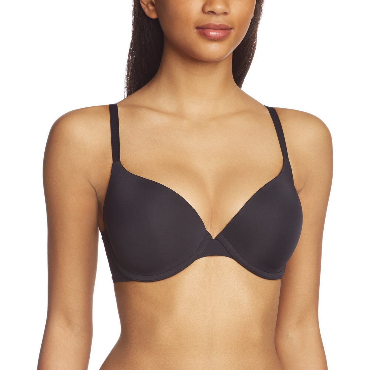 Бюстгальтер с мулированными чашками, которые покрыты "нежнейшей" микрофиброй, и с глубокой линией декольте. Этот комфортный и абсолютно бесшовный бюст - невидим даже под самой облегающей одеждой. Чашки бюстгальтера с прослойкой из мусса во всех размерах обеспечат Вам обворожительное декольте. Внутренняя сторона чашек - контрастного цвета. Несколько вариантов для перестегивания бретелей.